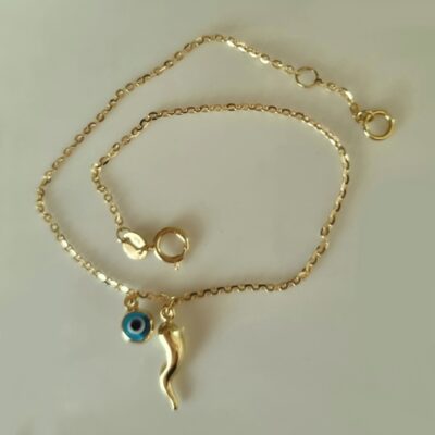• 9ct Gold bracelet cornicello evil eye