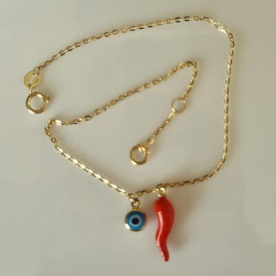 9ct Gold bracelet cornicello red chilli evil eye bracelet