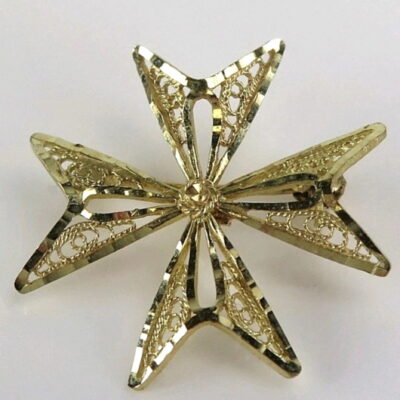9ct Gold filigree Maltese Cross brooch 2.5cm