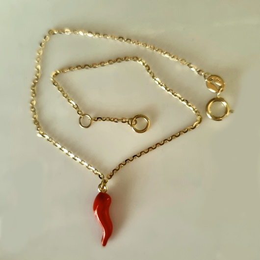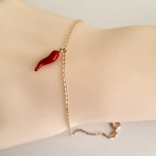 9ct Gold bracelet cornicello red chilli.