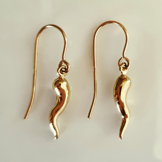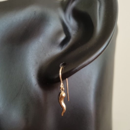 9ct Gold earrings cornicello horn hook 1.4cm.